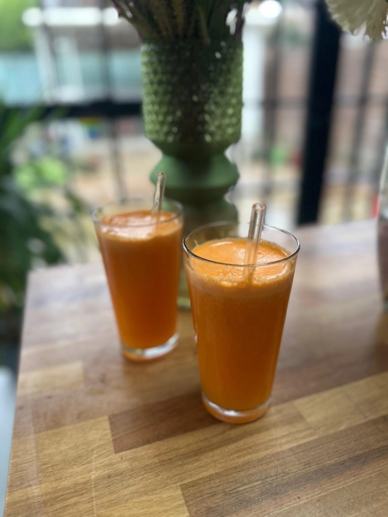 Used our new juicer (thanks Lynn!)- carrot, orange and ginger. Delicious. Watched Nuremberg.